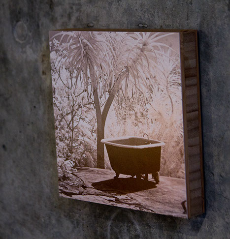 Most of my aluminum pieces are printed without a coat of white ink and a light brushed texture applied, so images can change dramatically as they take on the lustrous qualities of the metal beneath especially in the white areas of the image.