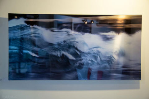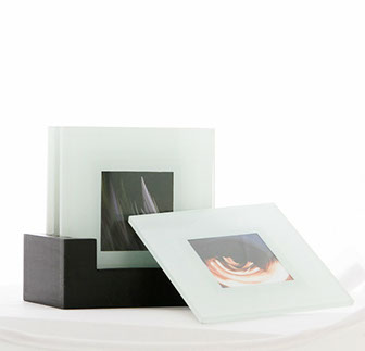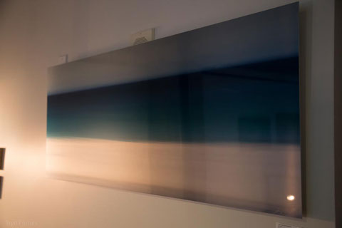 Aluminum as a printing surface is a sleek modern look with a dynamic sheen that changes as you move past the piece. We can print on aluminum up to 4 feet by 8 feet. Aluminum can be float framed (frame is a hidden box in the center of the piece) or box framed (frame sides go straight back from the edge) or it can be unframed and screwed directly to a wall (or ceiling). The ink is fused to the metal, and then covered with a clear coat. It is scratch resistant (though not impervious) and it can be cleaned with a microfiber cloth.